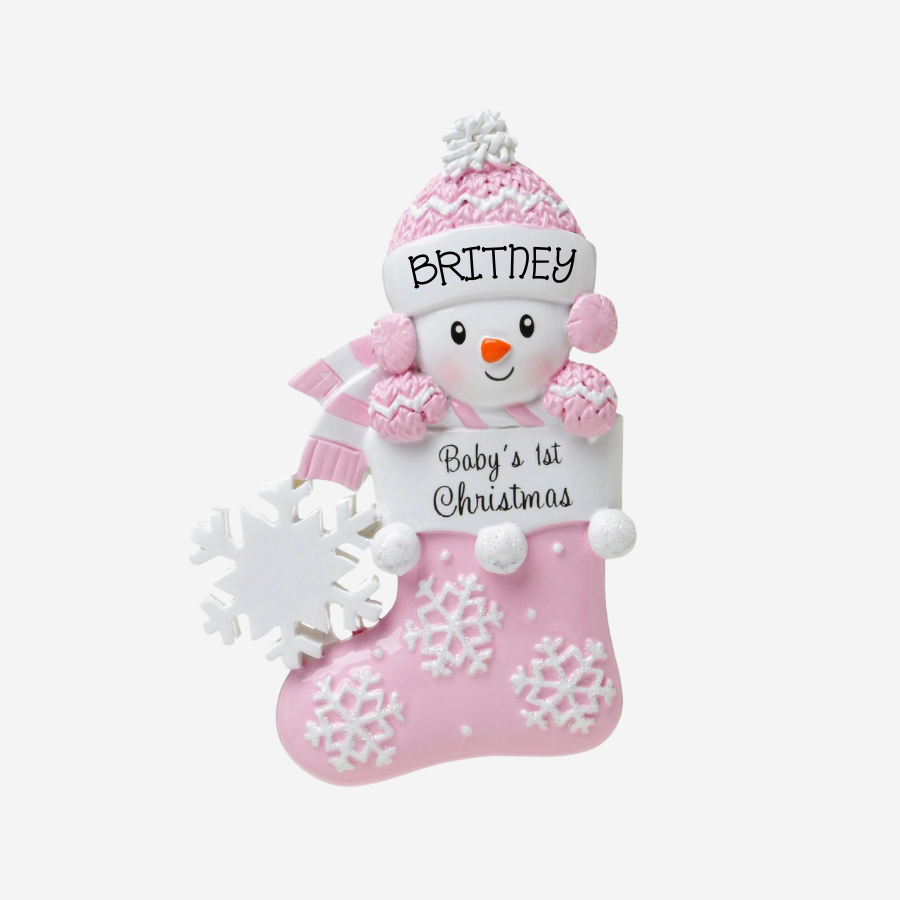 Snow Baby In Stocking (Pink) Personalised Christmas Decoration